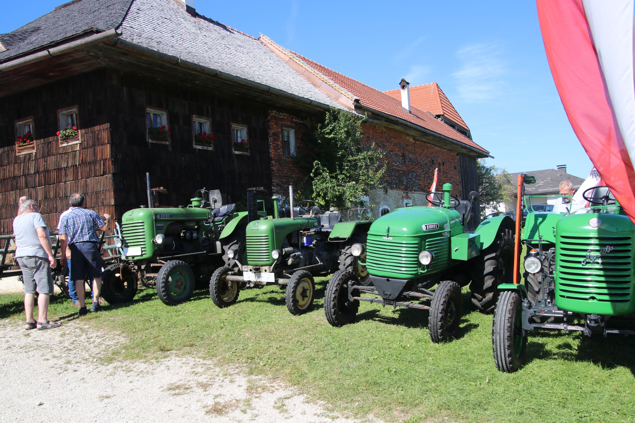 Der erste Sonntag der Druschwoche stand ganz im Zeichen des Traktoroldtimer-Treffen. Vor allem am Vormittag zogen immer wieder Regenschauer über das Gelände, die Stimmung der Besucherinnen und Besu...